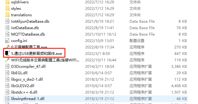 通过USB以及[更新音频和固件]工具下载音频固件到设备