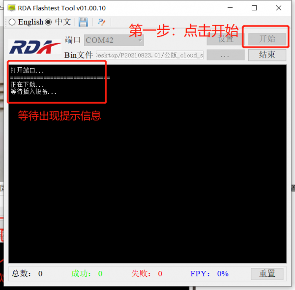 将PCB电源关闭,点击软件上的开始后,出现提示信息,再打开PCB板电源,切记,这里顺序不能反,如下图所示: