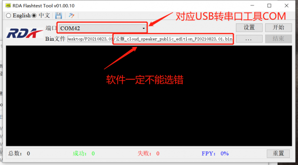 同时装电池也安装上,下载最新串口固件下载工具点击下载,下载后加载以公版_开头的固件(注意:其它任何配置都不用配置),如下图所示:
