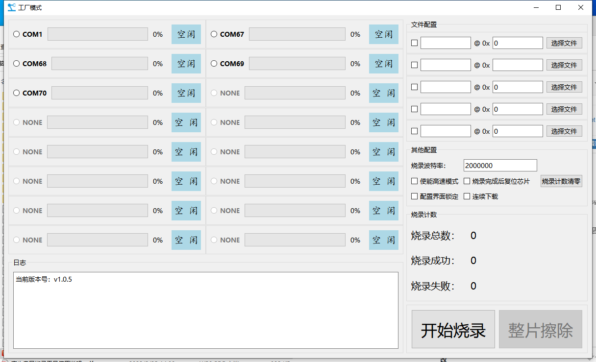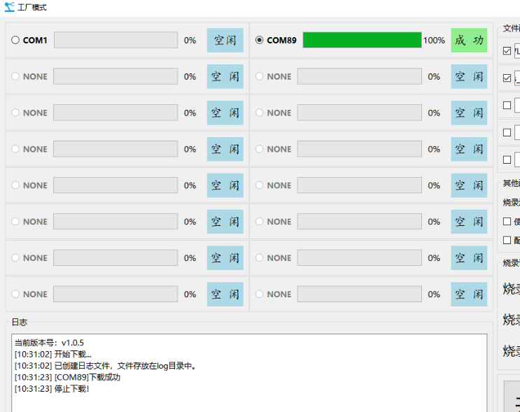 3. 软件配置完成后,点击开始烧录即可(注意:模块A9引脚低电平为下载模式)