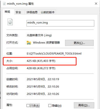 - 查看一下“minifs_rom.img”的文件大小与合成文件中的文件大小是一致的: