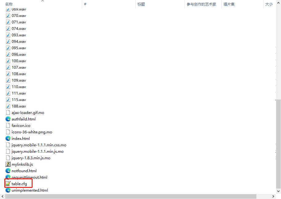 (音频的编号可自定义为000-254)部分音频编号为系统音频,顾客如想替换,可自行制作修改对应编号即可,无需填入table.cfg文件中。具体内容可查看