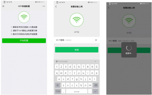 公众号配网即为AirKiss配网功能。AirKiss是微信硬件平台提供的一种WIFI设备快速入网配置技术,要使用微信客户端的方式配置设备入网,需要设备支持AirKiss技术,并且手机必须连接2.4G频段的路由器才可以使用,具体使用方式如下: